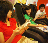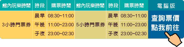 按摩椅包廂: 請持有照片的證件以及門票入場券至櫃台,我們將為您安排包廂;若遇視聽包廂全數客滿時,請先持門票在服務櫃台預約,等候時可先使用其他館內玩樂設施,當輪到您的視聽包廂預約號碼時,櫃台將廣播、叫號通知您,並為您安排視聽包廂供您使用。 電話亭KTV: 每間可容納2-4人,電話亭包廂內配有2張座椅、2支麥克風及34吋以上電視。無人排隊時,無使用時間限制;需排隊等候時,請先按下門外的排隊按鈕。(等候時間開始倒數計時10分鐘)