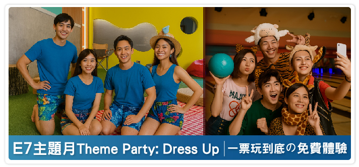 想讓你的活動氣氛瞬間爆棚,與眾不同?那就快來參加《E7主題月》活動吧!E7鼓勵你和朋友們發揮無限創意,自訂義 Dress Code,把E7PLAY變成你們獨一無二的主題派對主場!想像一下,穿著搞怪、復古或睡衣風的特色服裝,一起在保齡球道、撞球桌較勁,或在K歌包廂裡大合唱——那畫面絕對嗨翻天,記憶點滿滿,保證讓你們的派對成為年度最佳回憶!