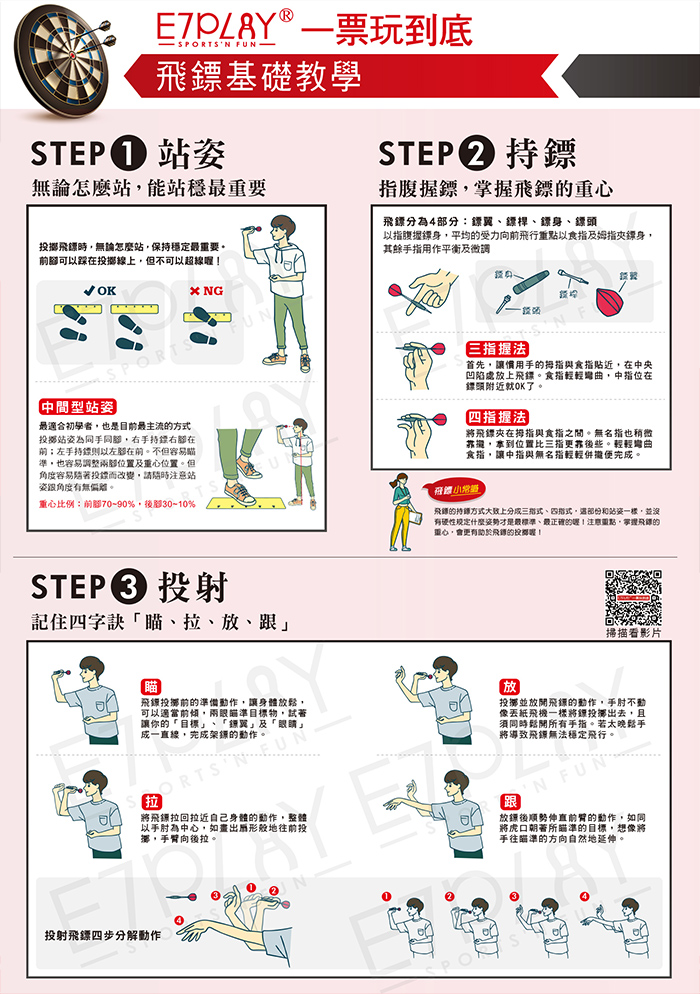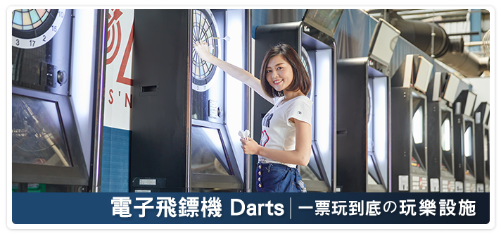 全台灣有上千家餐廳、夜店等,都擺放了需要投幣才能玩的「電子飛鏢機」可見射飛鏢這項活動的受歡迎程度。在您持E7門票入場後,只需要持有照片的證件以及門票入場券至櫃台,我們將為您安排飛鏢機桌號並提供飛鏢設備供您使用;若遇飛鏢機全數客滿時,請先持門票在服務櫃台預約,等候時可先使用其他館內玩樂設施,當輪到您的飛鏢機預約號碼時,櫃台將廣播、叫號通知您,為您安排飛鏢機桌號並提供飛鏢設備供您使用。
