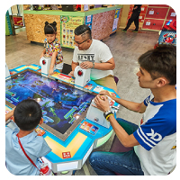 在您持門票入場後,不必另外花錢、不必投代幣,數十樣的遊戲機台,只要按下開始按鈕就可以免費玩啦!您可以一直玩一直玩、直到玩到飽為止喔!不過如果您後方有其他人排隊,請您在玩了2次後先行讓出,再重新排隊後接續著玩喔!
