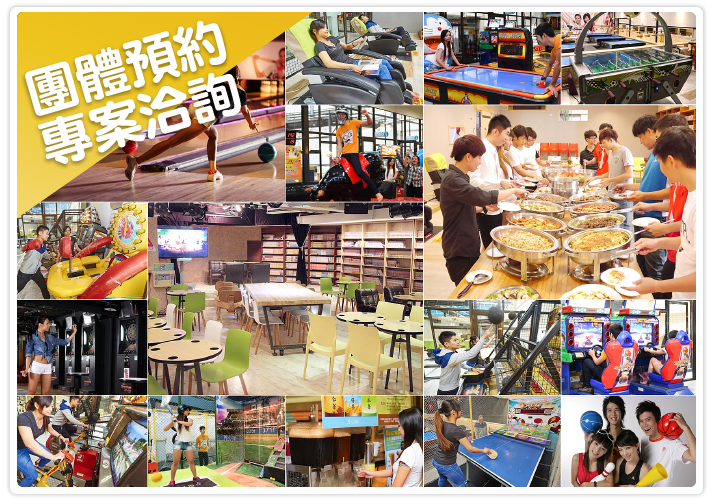各分店的玩樂設施略有不同,請洽各店專案負責人,以獲得最新的團體玩樂專案內容喔!