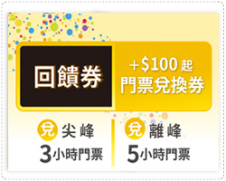 平日使用 本券加付100元,可依時段兌換門票: