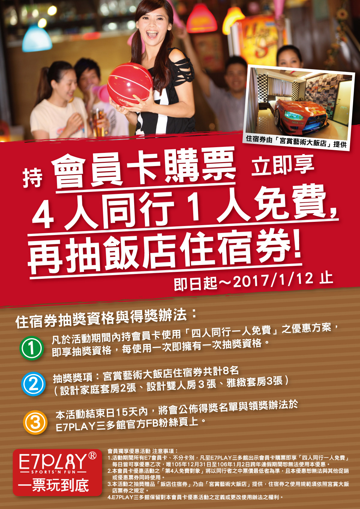 【三多館。會員獨享】持E7會員卡購票立即享「4人同行1人免費」,再抽飯店住宿券喔!
