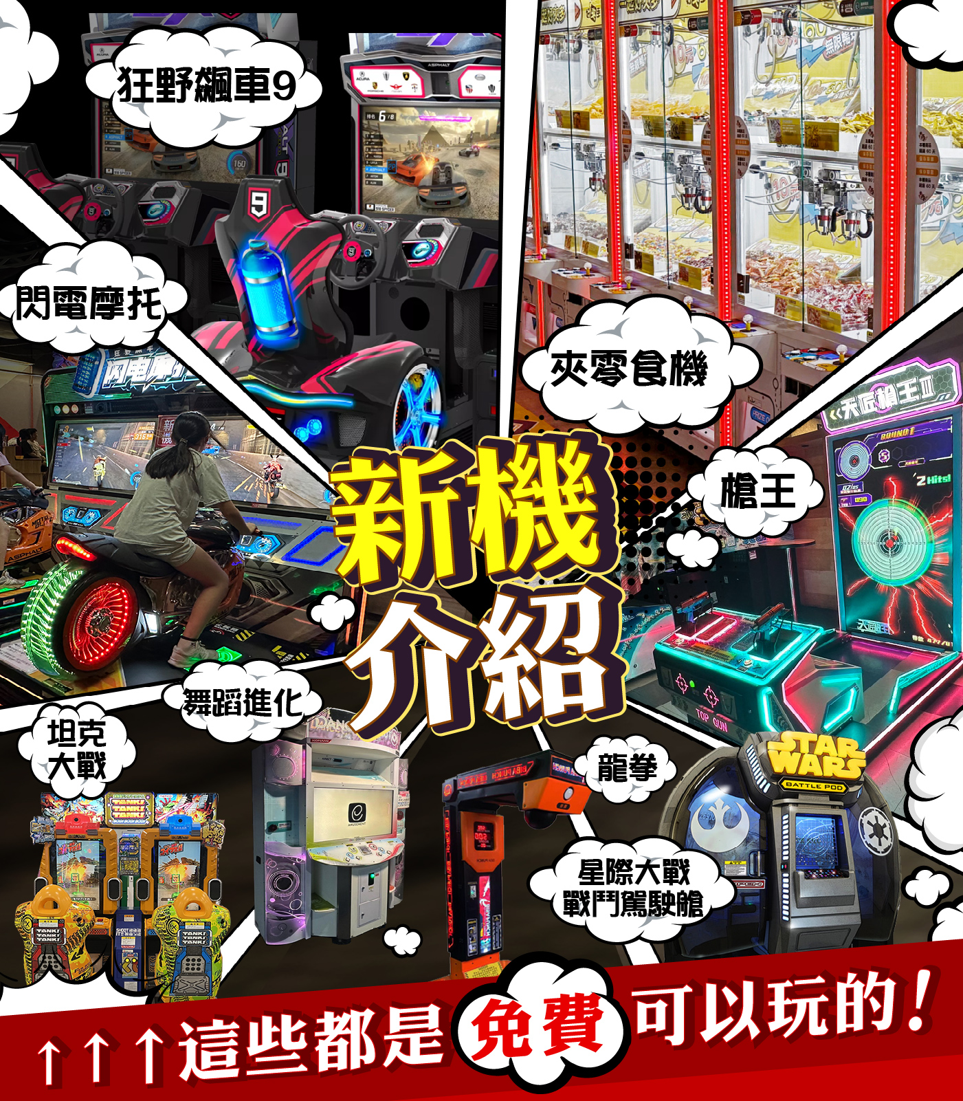 其他還有還有舞蹈進化(三重館獨家)、天匠槍王(新莊/三多)、巨獸浩劫3(新莊/三多)、坦克大戰(三多/三重)、龍拳二代(新莊三重)...等,全館的遊戲機台、設施都是免費可以玩的,真真實實『一票玩到底』!