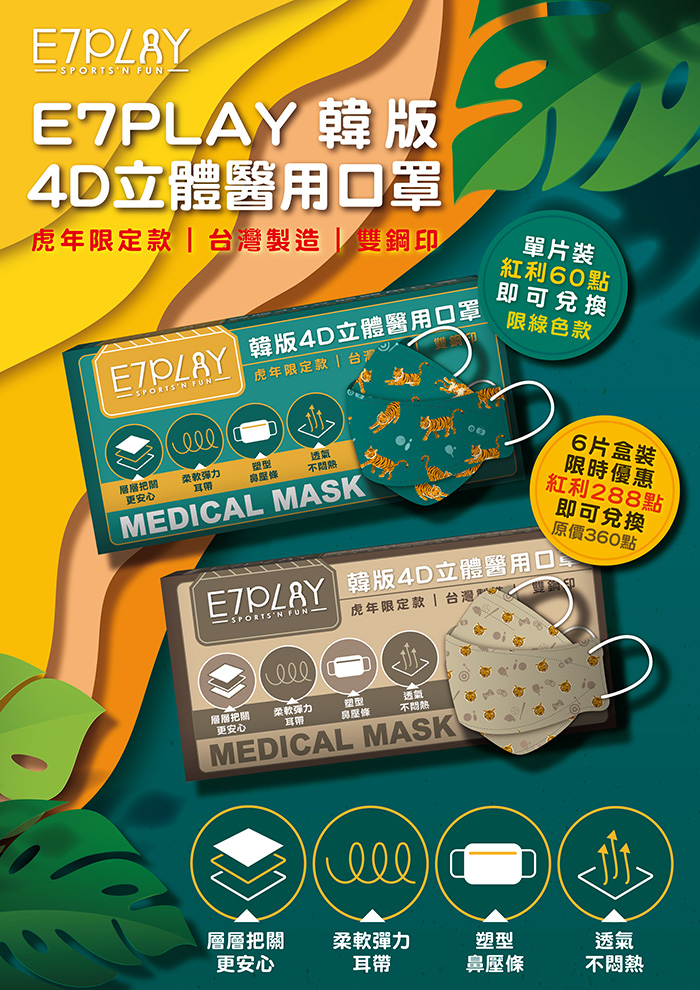 E7獨家設計 #虎年款 韓版4D立體醫用口罩★紅利點數兌換商品新上架★ 限時限量會員紅利數點兌換→兩色都很美!數量有限,換完為止!