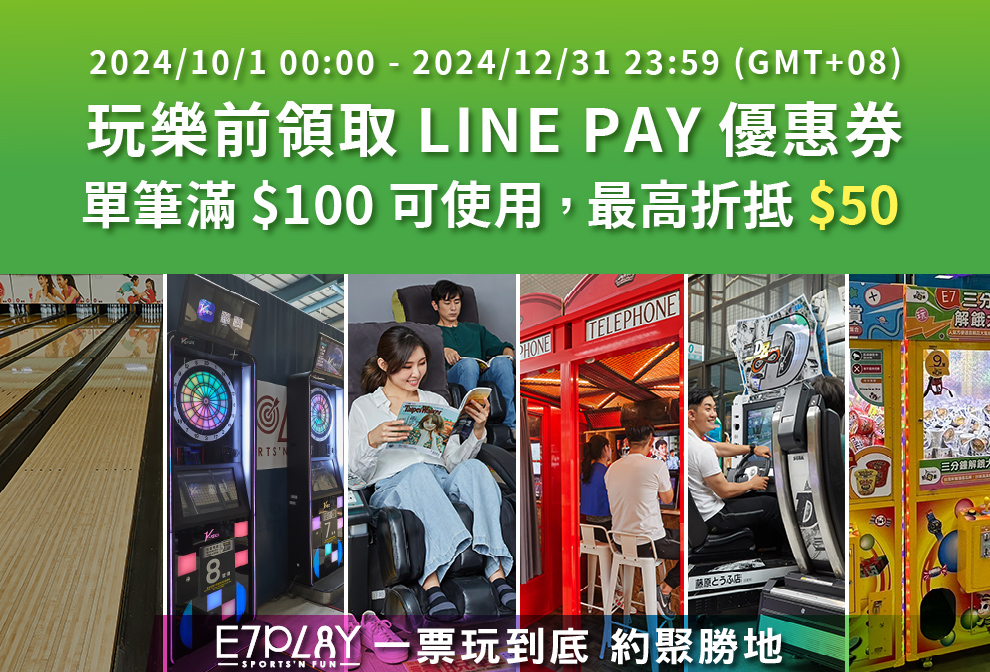 玩樂前領取LINE PAY優惠券 單筆滿$100可使用,最高折抵$50!