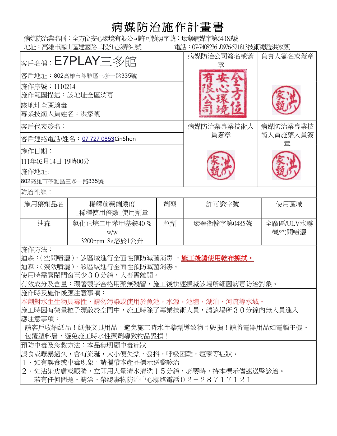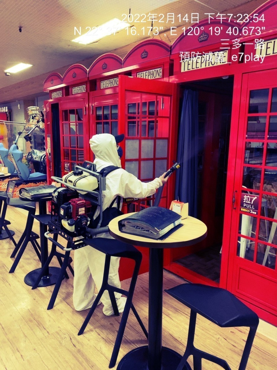 高雄三多館配合高雄市府衛生局防疫規定,已於2/14預防性停業當日完成全面清消。