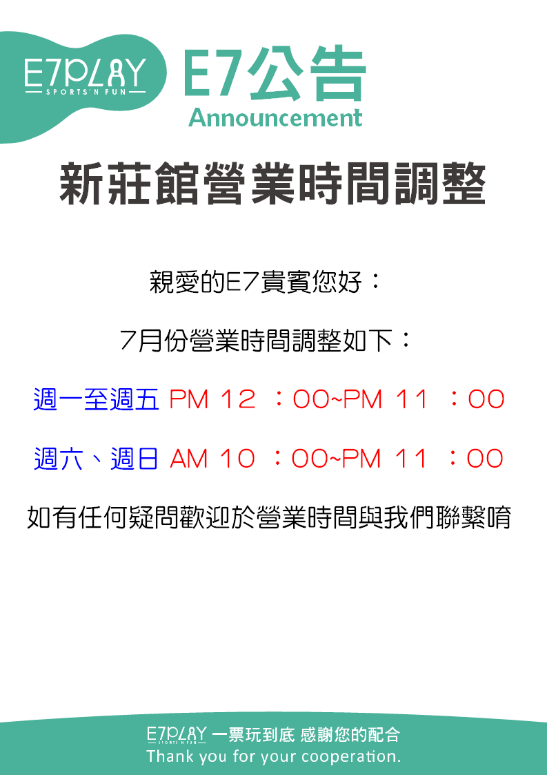 新莊館|2023.07 月份營業時段調整