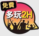 ★ 本券需本人搭配購買任一場次的3小時(或5小時)門票時,加贈2小時門票時間,例如:購買3小時門票時,免費升等為5小時門票-讓您免費多玩120分鐘。