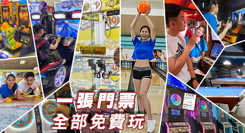 E7PLAY一票玩到底:有三重跟新莊兩間分店,提供 3 或 5 小時的門票制,涵蓋保齡球、撞球、KTV、大型遊戲機等數十種設施,讓你和朋友或家人能盡情暢玩一整天。