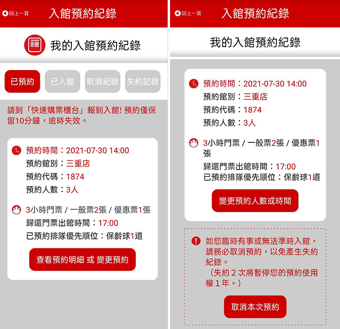 你可提前安排30天內的預約,若人數或時間有變動,再用APP隨時修改即可。如果你預約不到喜歡的時段,或不需要使用保齡球道,請直接到現場購票就可以囉!
