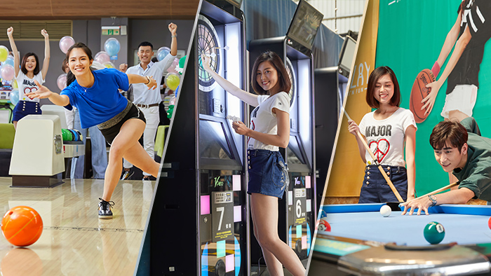 保齡球=40mins、飛鏢=40mins、撞球=30mins