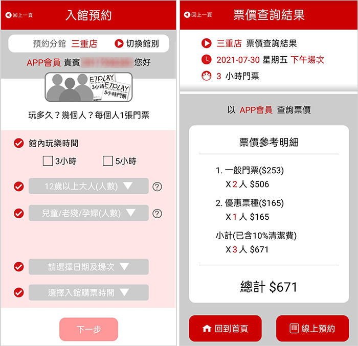 用APP預約成功,當天到櫃台結帳時只要出示手機APP預約紀錄,搭配首次下載E7 APP獲贈的「買一送一門票優惠券」等於現打五折!這絕對是最無敵的購票優惠了!