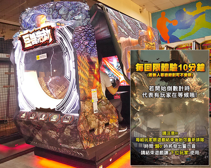 遊戲機台不用投代幣,直接按下開始鈕就能玩了!但若遇到後方有人排隊時,機台上會有像這樣的告示板,提醒大家玩個一陣子換別樣(人)玩~